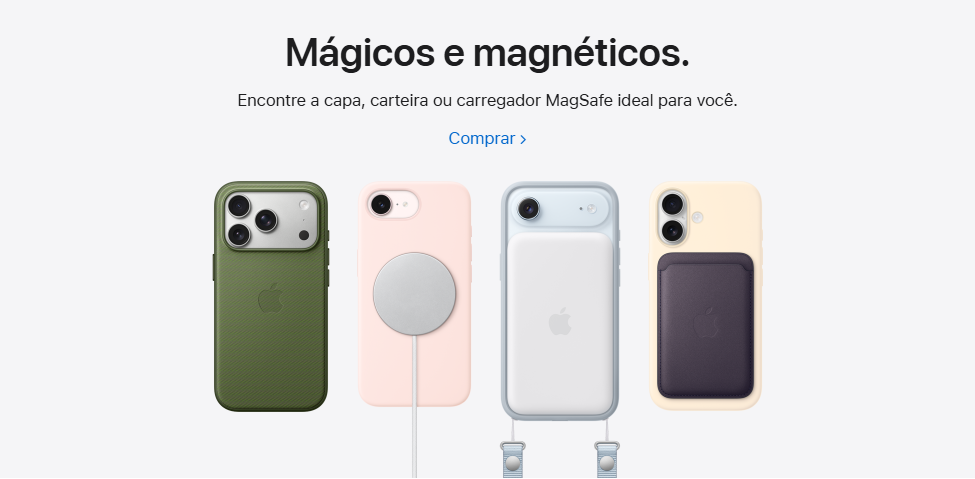 O alinhamento magnético funciona apenas com o iPhone 12, iPhone 13, iPhone 14, iPhone 15, modelos de iPhone 16 compatíveis, modelos de iPhone 17 e iPhone Air.